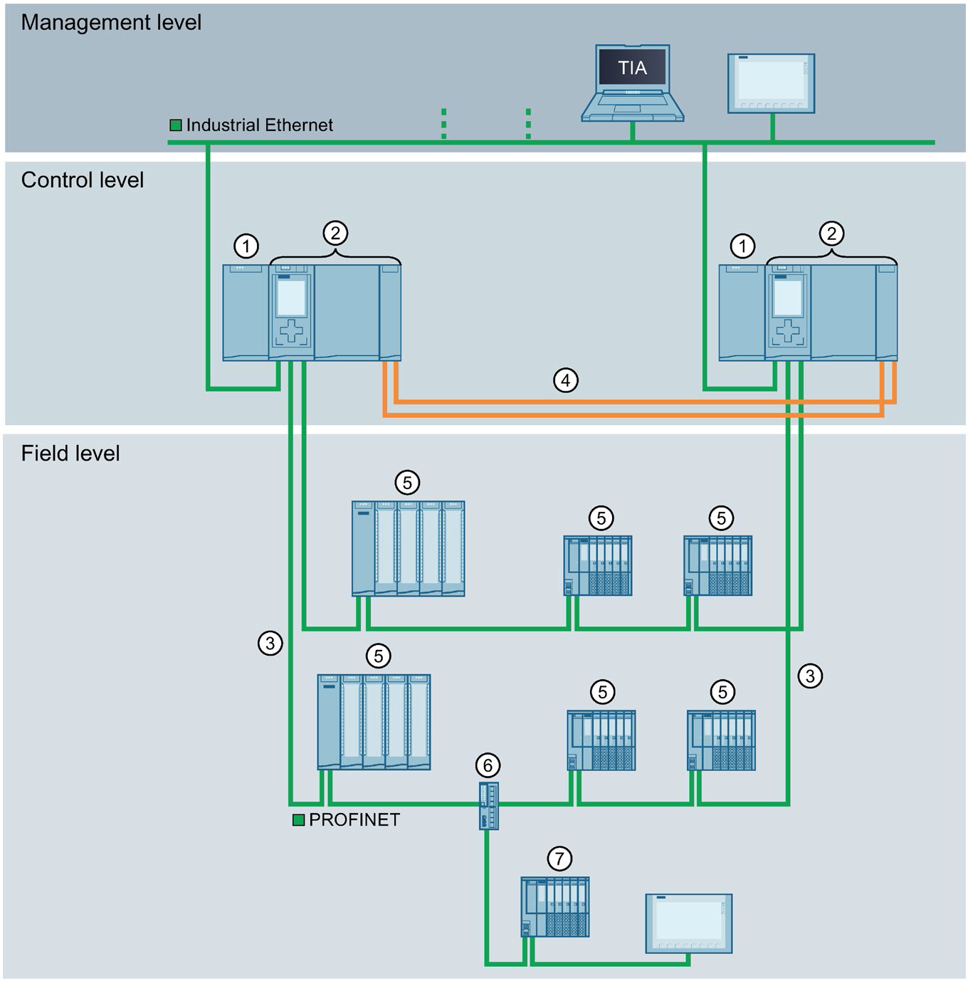 ④ PROFINET cable (redundancy connections, PROFINET ring)