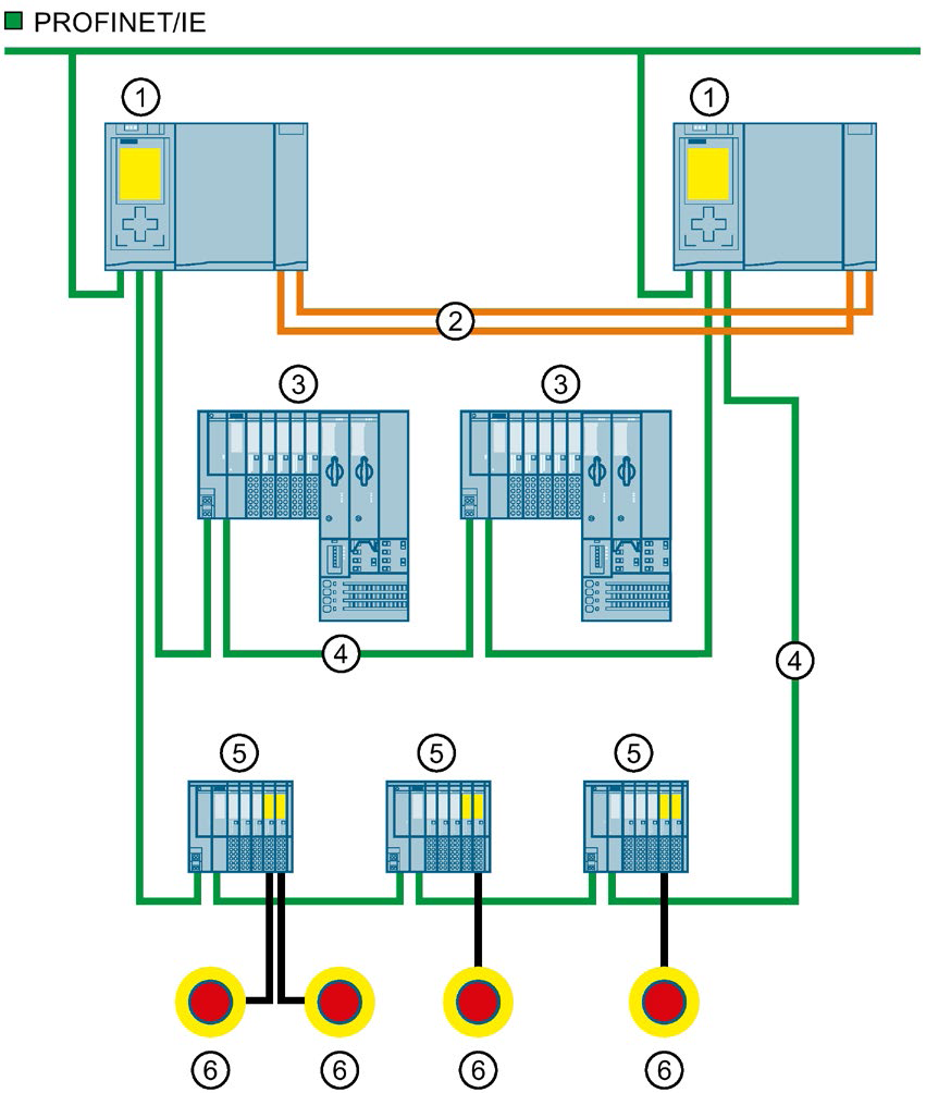 ⑤ ET 200SP IO device with fail-safe modules for evaluating the emergency stop buttons