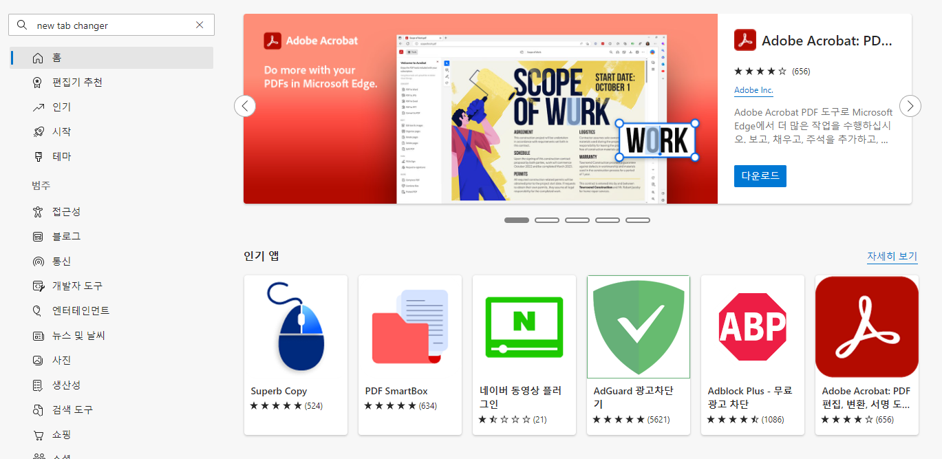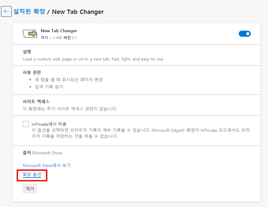 다시 엣지에서 확장 아이콘 클릭-> 확장관리